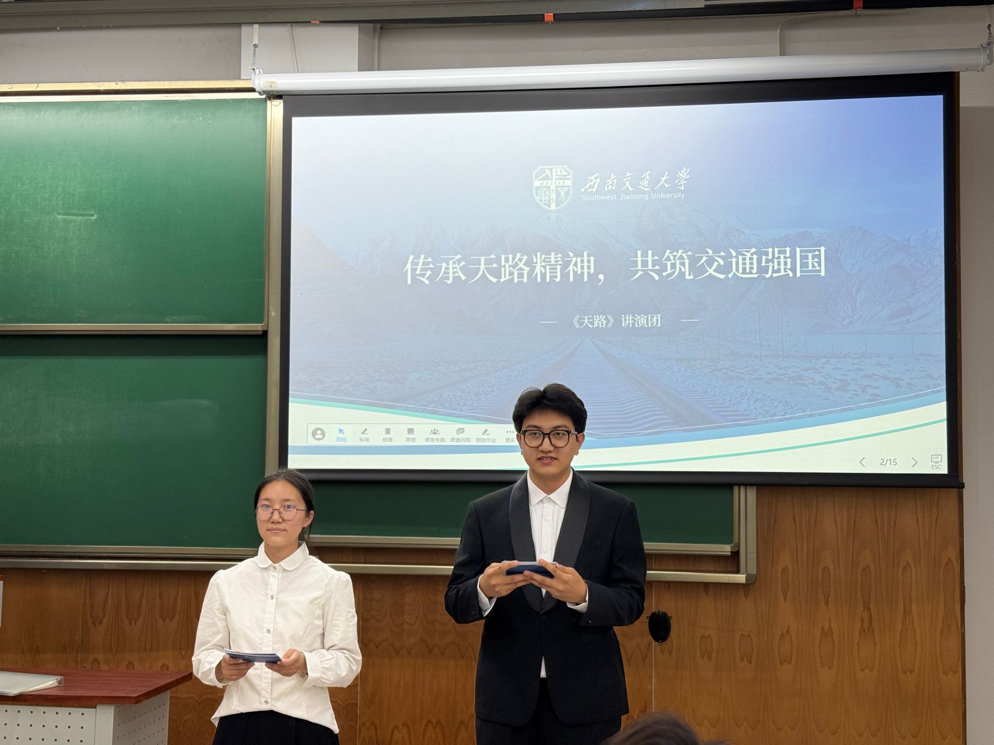 为加强学生干部队伍建设,打造政治素养高、协作能力强、责任意识牢的团学骨干力量,土木工程学院“青马工程”暨“新阶梯成才”学生干部培训中级班聚焦部长级学生干部群体,精心策划系列活动。5月15日下午16点,随着主持人陈雨婷、王志涛热情洋溢的开场致辞,由“天路”讲演团为我们带来的“传承天路精神,共筑交通强国”专题讲演活动在犀浦校区X4157教室拉开帷幕。专题讲演活动旨在通过艺术与精神的交融碰撞,为学院学生干部带来一场别开生面的思想启迪之旅。