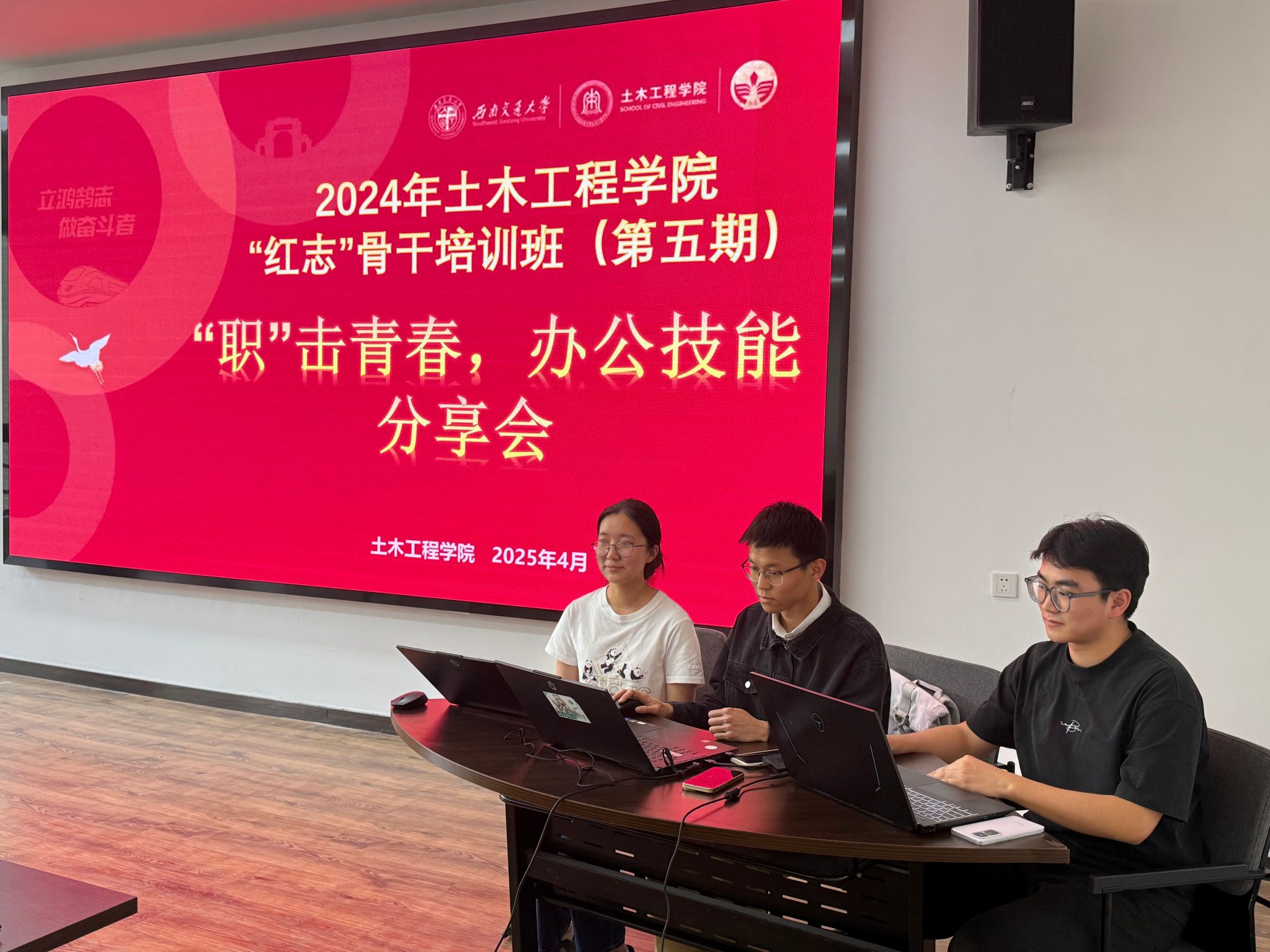 为提升“红志”班学员的基础办公软件操作能力,近日,土木工程学院“红志”学生骨干培训班(第五期),开展了“职击青春”办公技能分享会系列活动,以四人小组为单位,围绕 Word、Excel、PPT、PS、PR 等办公软件展开学习与交流。团建中心指导老师贾文怡及 “红志” 班全体成员参与分享交流活动。