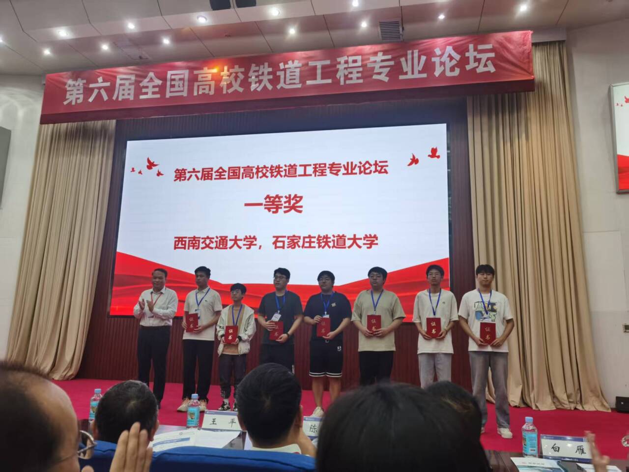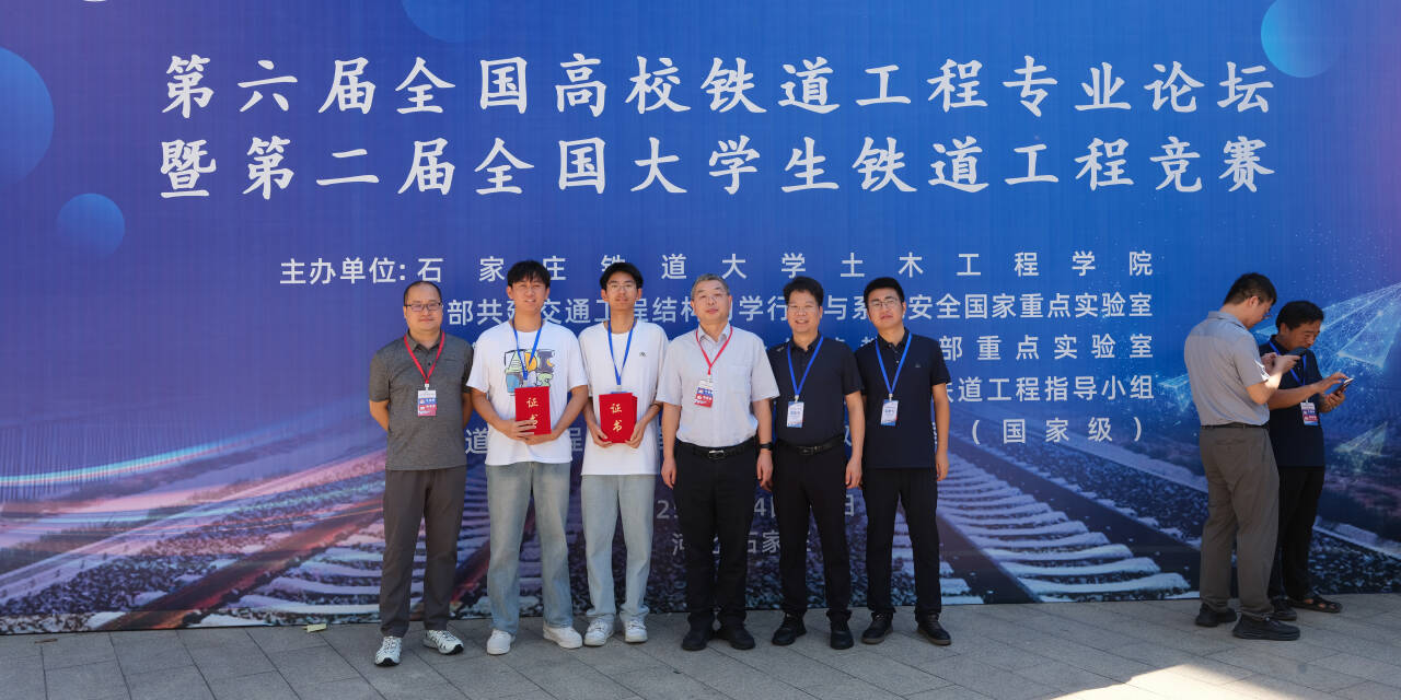 第二届全国大学生铁道工程设计竞赛于2025年7月6日在石家庄铁道大学落下帷幕,我院学子再次取得优异成绩。在各位指导老师和同学们的共同努力下,参赛队伍克服重重困难,经赛务组复核、评委会评定,决赛奖答辩及加载等多个环节,最终摘得全国一等奖1项的荣誉。在整个备赛期间,参赛队伍备赛时长超200小时,各指导老师平均指导时间突破100小时,为同学们获奖打下了坚实的基础。