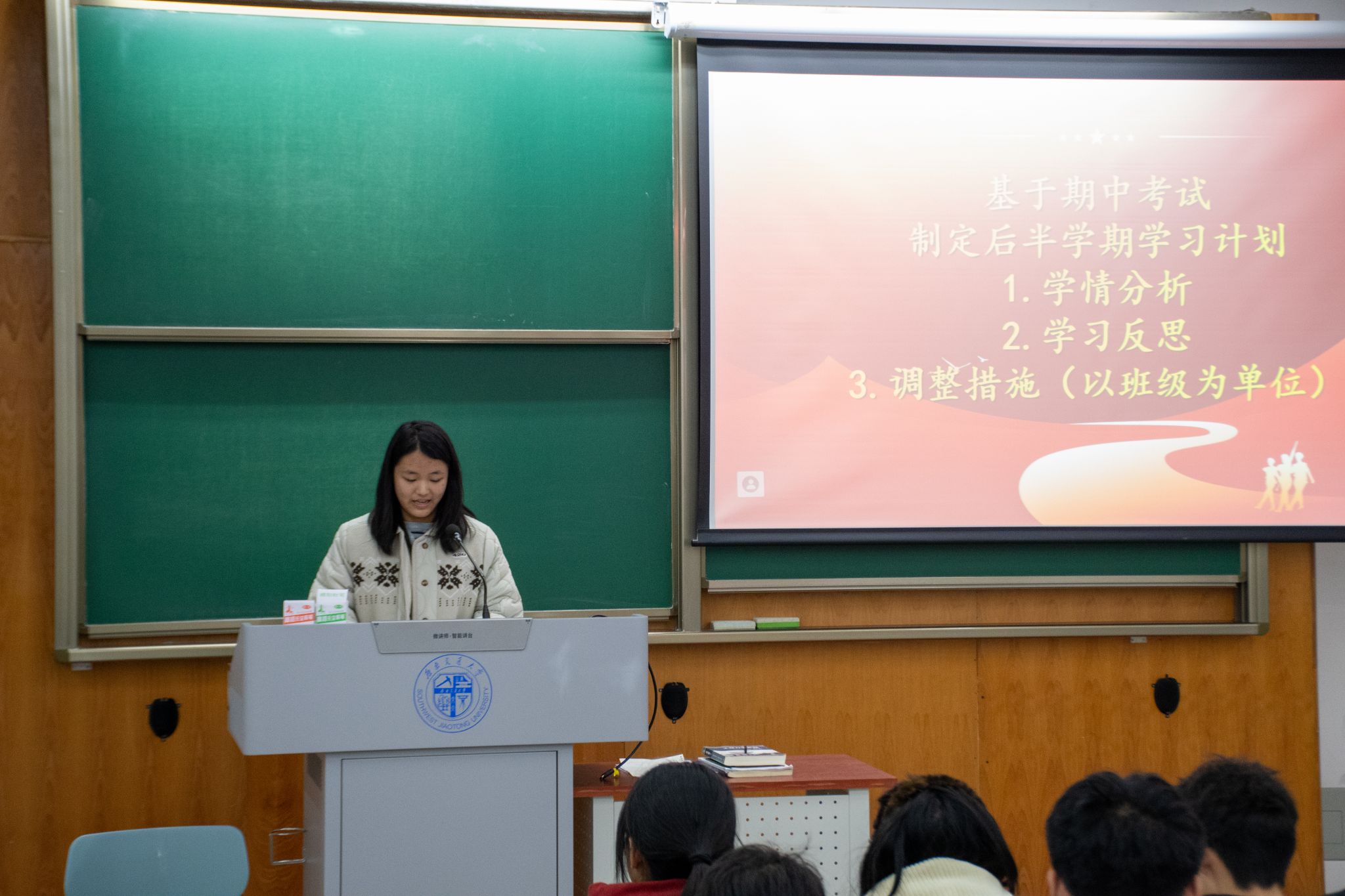 11月25日晚19:30,“新生班干部理论素养和能力素质提升”专题培训在X2417进行。梁涛老师强调,班干部应与辅导员保持密切沟通,建立畅通的信息传达机制,确保各项事务高效落实。并且鼓励同学们掌握科学学习方法,积极向班导师、优秀学长学姐请教,共建共享学习资源,在学业成绩、科研训练、学科竞赛等方面不断提升自我。