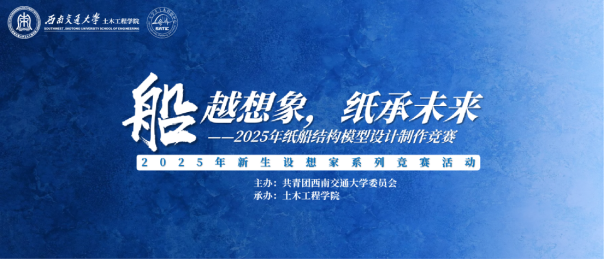 2025年11月29日至30日,西南交通大学土木工程学院“纸为承载 船越想象”纸船模型结构设计竞赛于西南交通大学犀浦校区图书馆二号报告厅顺利举行。本次竞赛由共青团西南交通大学委员会主办,土木工程学院承办,并获得中建科工集团有限公司(西部)的赞助支持。