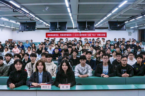 2025年11月13日,土木工程学院以“铸魂强基跟党走,青春逐梦建新功”为主题开展第十七届“红土”党课大讲堂实践活动,本次活动由学校研究生“红路”理论学讲团讲师周佳艺主讲,土木工程学院2025–02期党课培训班的入党积极分子踊跃参加。