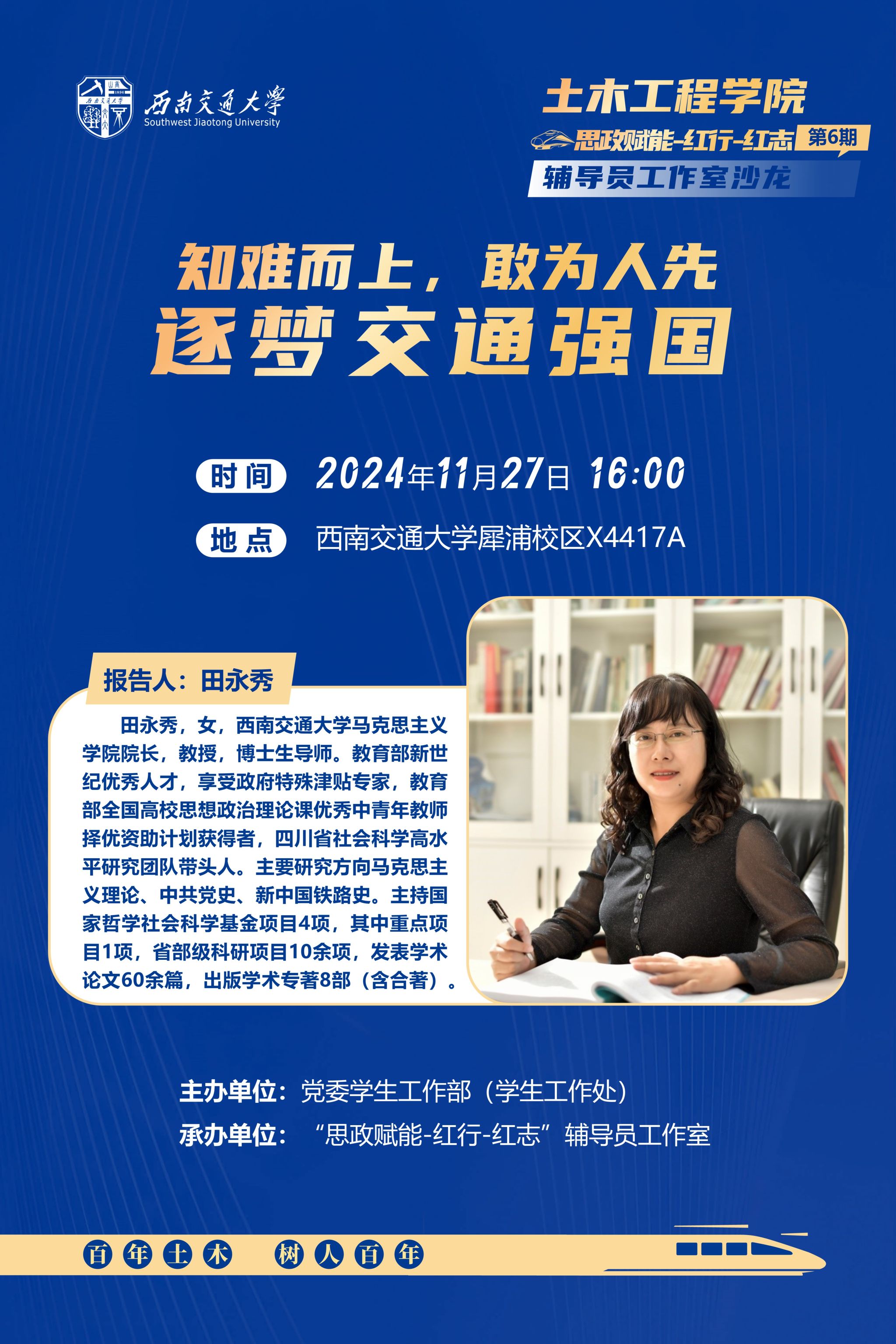 【辅导员沙龙】报告主题:知难而上,敢为人先,筑梦交通强国