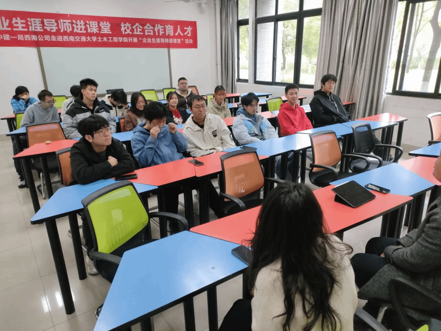 为助力土木工程学院学生在大二阶段明确未来目标与奋斗方向,激发专业学习热情,并深入了解专业就业前景,2024年11月18日,中建一局西南公司的两位企业生涯导师邵刚、张娟玲再度走进土木工程学院,与土木2023-04班的同学们展开了一场别开生面的交流会。