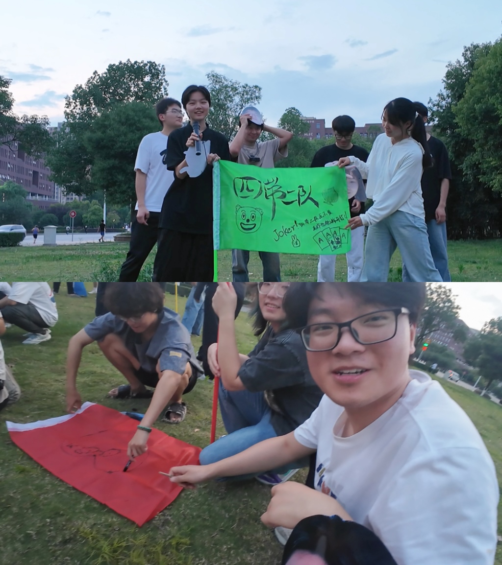 团队创作环节更是将活动氛围推向高潮,各小组成员充分发挥主观能动性,围绕“青春赋能·共启未来”主题,集思广益设计专属队徽、凝练团队口号,在思想碰撞与分工协作中,不仅展现了多元专业背景下的创意活力,更深刻体会到“1+1>2”的团队合力。在后续的小组体能比赛中,各小组成员劲往一处使、心往一处聚,全力以赴为团队荣誉拼搏,现场呐喊声、加油声此起彼伏,充分展现了交大学子昂扬向上的精神风貌。