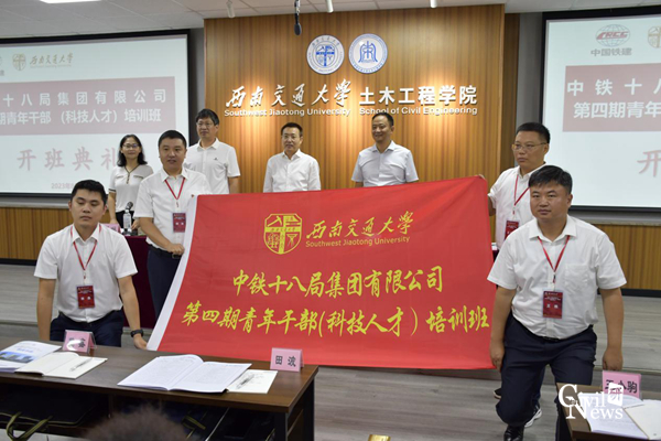 2023年8月28号上午八点,中铁十八局集团有限公司第四期青年干部(科技人才)培训班开班典礼在九里校区土木馆1234教室顺利举行。