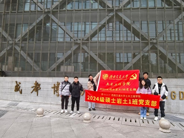 2024年12月11日下午1点,土木工程学院2024级硕士岩土1班党支部成员来到成都市博物馆,开展了校级党支部示范活动“红心铸魂”系列中的“红旅印记”红色教育基地线下参观活动。本次活动旨在让党员同学深入了解成都的历史文化,重温革命先辈为民族独立和人民解放所做出的巨大贡献,从而进一步坚定党员理想信念、增强党性修养,并通过学习历史提升文化自信,凝聚党支部力量。