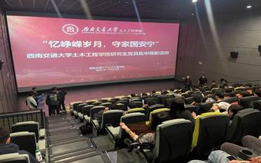 为深入学习贯彻习近平新时代中国特色社会主义思想,弘扬爱国主义精神,缅怀革命先烈的英雄事迹,进一步激励青年学子传承红色基因、勇担时代使命,2025年10月23日晚7点至9点,西南交通大学土木工程学院组织研究生党员前往犀浦C+影城4厅集体观看爱国主义影片《志愿军:浴血和平》。本次活动共有百余名师生参加。