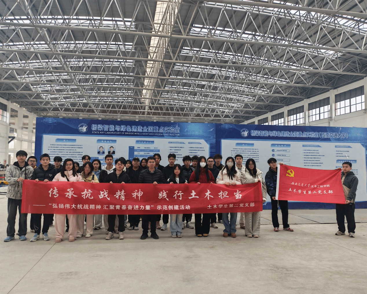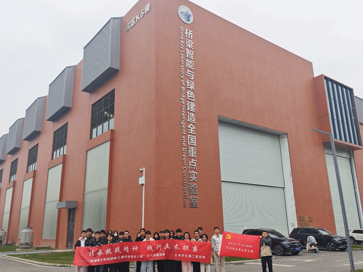 2025年11月18日,西南交通大学土木工程学院土木学生第二党支部精心组织支部党员与入党积极分子,赴桥梁智能与绿色建造全国重点实验室开展“传承抗战精神,践行土木担当”主题实践活动。本次活动特别邀请实验室张明金老师全程带队讲解,为参与成员提供了兼具深度与温度的专业指导。