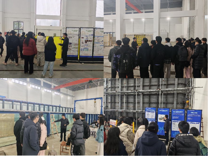 在张老师的带领下,支部成员们参观了实验室内的各个研究区域,了解了先进的科研设备和正在进行的实验项目。张老师带领大家对实验室的六大区域进行了参观,并为大家逐一讲解了每个区域的工作和意义。其中,多功能桥梁波流实验池的讲解尤为详尽——该实验池可精准模拟深水、强流、海啸、风暴潮等复杂工况,为深水大跨桥梁基础冲刷防护、结构抗浪动力响应等关键技术研究提供了核心支撑,其专用性与功能集成度均达到国际领先水平。亲眼目睹先进设备运转场景、聆听科研团队攻坚故事,成员们对土木工程“科技赋能、绿色发展”的认知愈发深刻,对行业未来发展前景满怀憧憬。