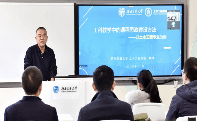我校土木工程学院的杨成副教授长期深入研究课程思政有机融入土木工程专业教学的理论基础与实践方法。他在名为“工科教学中的课程思政建设方法——以土木工程专业为例”的报告中旁征博引,从西方国家高等教育中普遍存在的价值观教育出发,深入阐述了价值观教育的理论基础,分析了价值观教育与不同培养层次、不同类型教学内容的关系,并给出了切实可行的课程思政建设思路与实施路径。