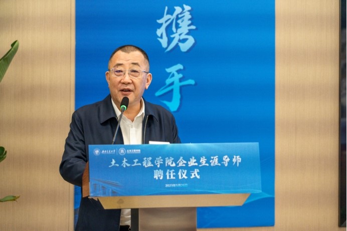 习近平总书记在党的二十大报告中指出:“要强化就业优先政策,健全就业促进机制,促进高质量充分就业。”为深入贯彻习近平总书记关于就业工作的重要指示,引导广大学生树立正确的择业观、职业观和就业观,5月26日上午9:30,土木工程学院在犀浦校区图书馆二号报告厅举行企业生涯导师聘任仪式。学校党委副书记余敏明,招生就业处处长陈岩峰,土木工程学院院长蒲黔辉、党委书记高平平、党委副书记周曦,中铁五局西南区域总部党委书记徐海燕及来自中国中铁、中国铁建、中国建筑、中国交建等企业的40余名企业生涯导师代表出席聘任仪式。聘任仪式由土木工程学院党委书记高平平主持,辅导员、学生代表参加了仪式。