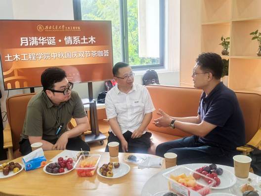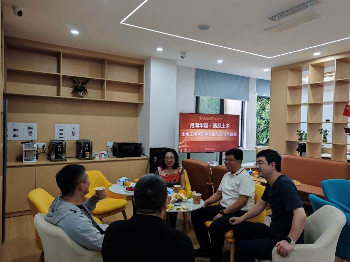 秋韵盎然,丹桂飘香。为庆祝中华人民共和国成立76周年,共度中华民族传统中秋佳节,增进学院教师间的交流与情谊,土木工程学院于2025年9月29日至30日,在九里校区1250教师驿站成功举办了“月满华诞,情系土木”双节茶咖荟活动。活动现场温馨雅致,充满了浓厚的节日氛围与热烈的学术交流气息。
