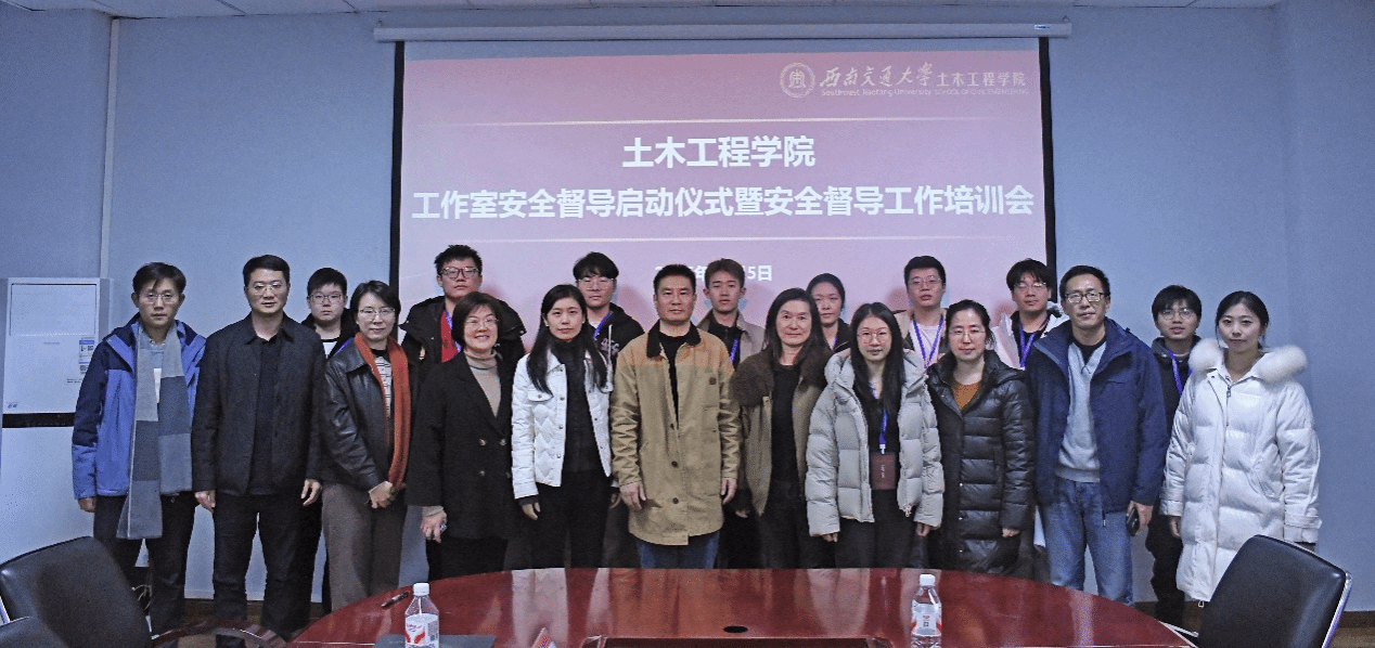 仪式结束后,全体与会人员合影留念。学院领导与安全督导员一同前往各工作室开展安全巡查,现场指出并记录相关安全隐患与卫生问题。此次启动仪式与培训会的举办,是土木工程学院扎实推进实验室与工作间安全管理、提升学生自我管理能力的重要举措,旨在通过师生联动、常态督导,切实筑牢校园安全防线,保障教学科研环境平稳有序。