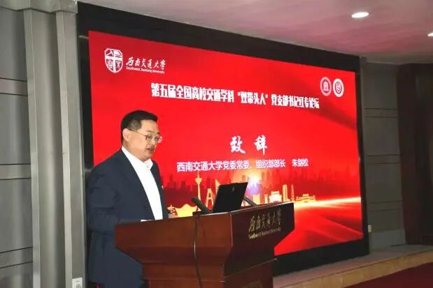 开幕仪式上,西南交通大学党委常委、组织部部长朱剑松致辞,介绍了学校办学、在轨道交通领域的成就及党建工作成绩,强调“双带头人”党支部书记深化“一融双高”,一体推进教育、科技、人才发展,为交通强国和区域经济发展主动担当。
