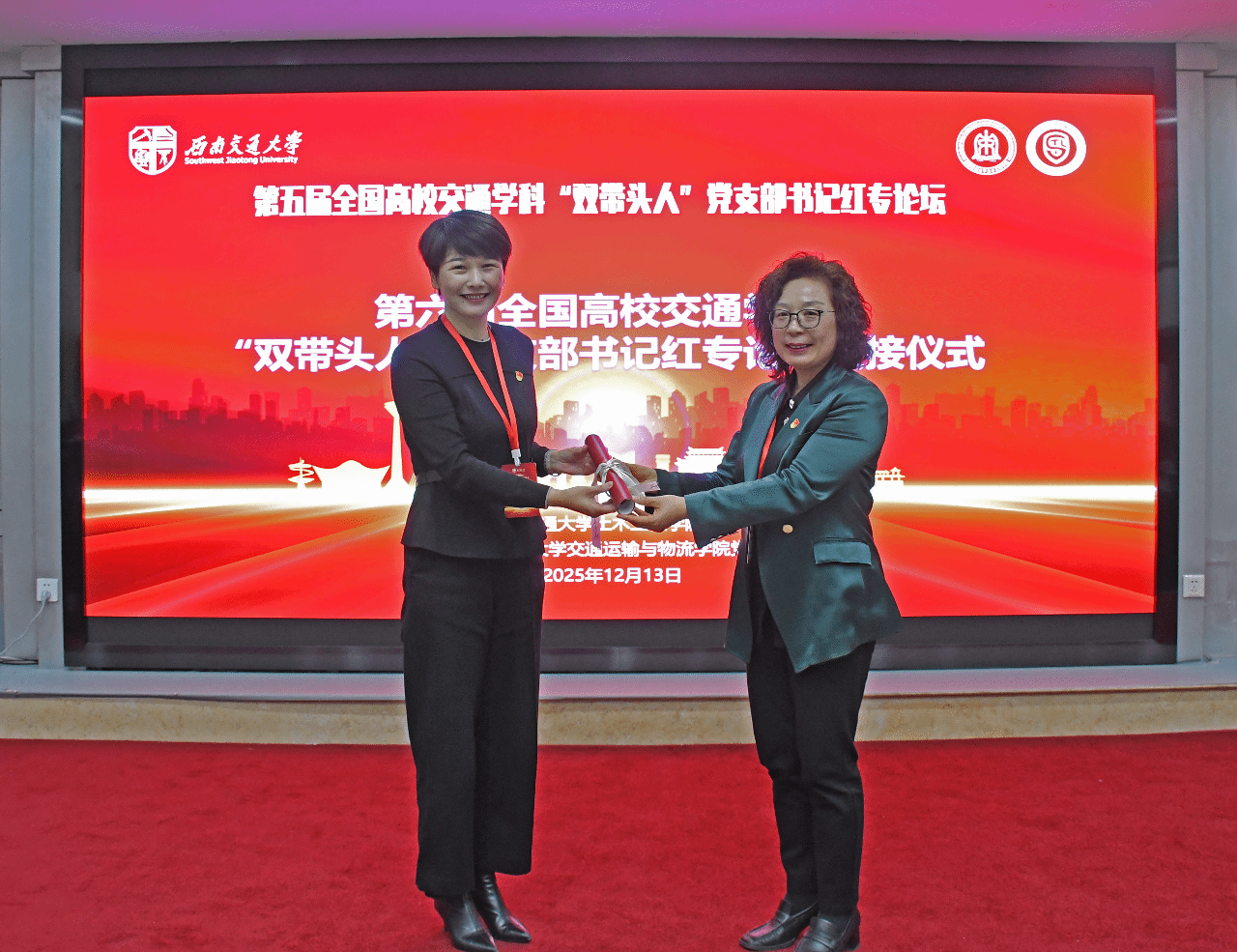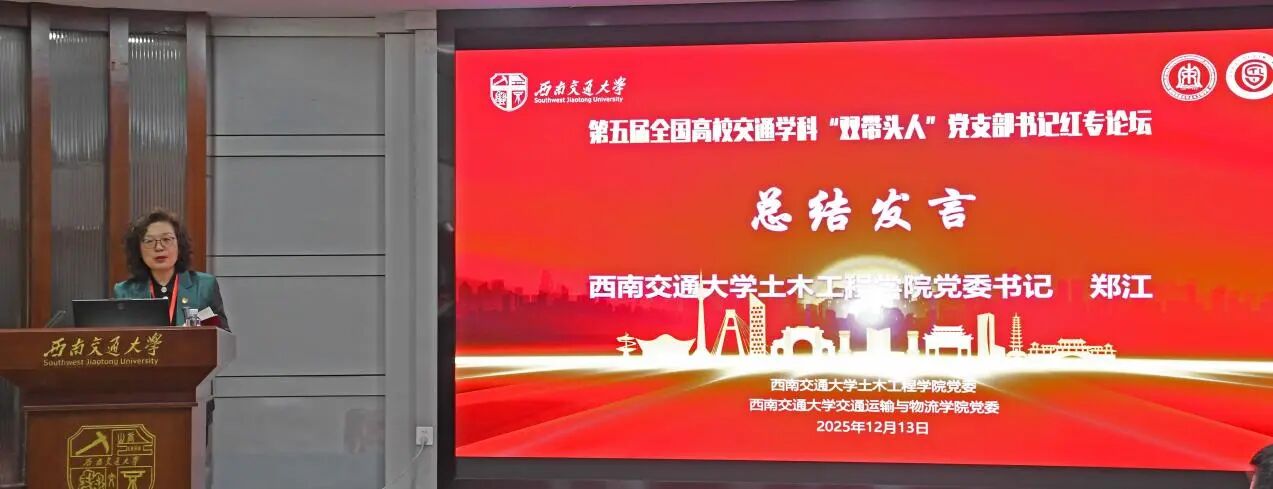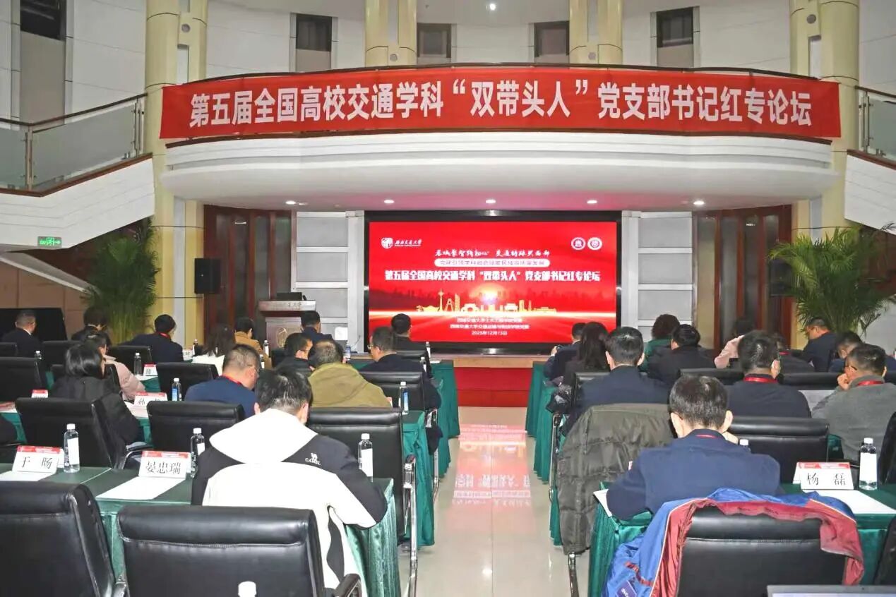 12月13日,第五届全国高校交通学科“双带头人”党支部书记红专论坛在西南交通大学成功召开。此次论坛以“蓉城聚智践初心,交通铸脉兴西部——党建引领学科融合赋能区域高质量发展”为主题,来自哈尔滨工业大学、同济大学、东南大学、华南理工大学、中山大学、上海交通大学、长安大学、北京交通大学、苏州大学、合肥工业大学、西安建筑科技大学、上海海事大学等全国高校交通学科“双带头人”教师党支部书记、党建工作者以及我校土木工程学院和交通运输与物流学院教师党支部书记、土木道路与铁道工程系教工党支部代表等60余人参加了此次论坛。本次论坛由西南交通大学土木工程学院党委和交通运输与物流学院党委联合主办。