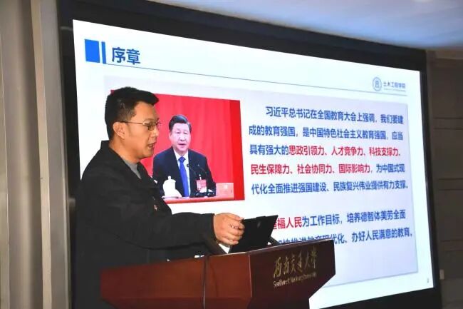 西南交通大学土木工程学院党委委员、副院长,国家级高层次人才陈嵘教授作了题为《党建引领学科发展与新时代高校人才队伍建设思考》的报告。陈嵘首先为大家介绍了我校的办学历史,学科设置以及土木工程学院的基本情况,随后他从全国党建工作标杆院系建设、全国党建样板支部建设、人才队伍建设三方面,系统性地向大会报告了我院基层党建工作体系、实施路径和做法,以及党建引领学科发展和人才队伍建设的成效。