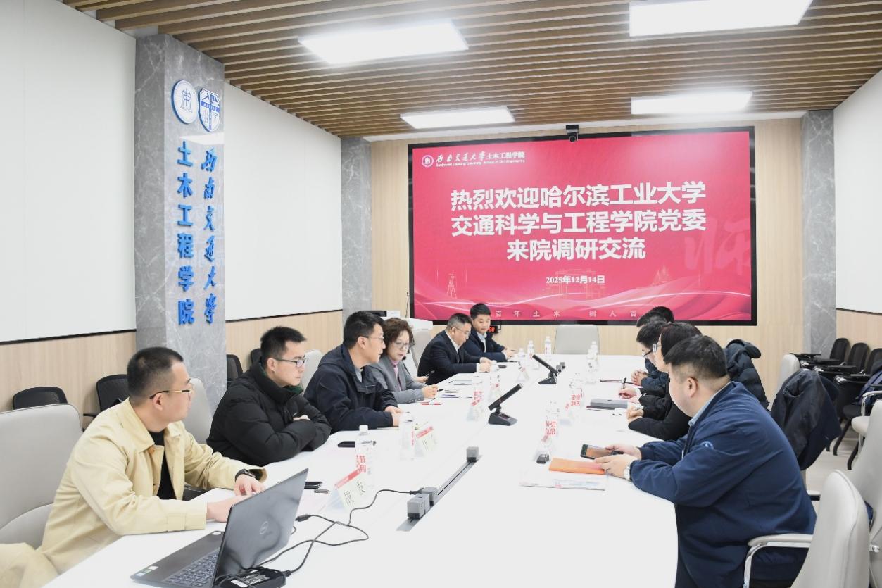 12月14日上午,哈尔滨工业大学交通科学与工程学院党委书记王东升一行,到西南交通大学土木工程学院进行调研交流。调研座谈会在九里校区土木工程学院会议室举行,会议由学院党委委员、副院长陈嵘主持。