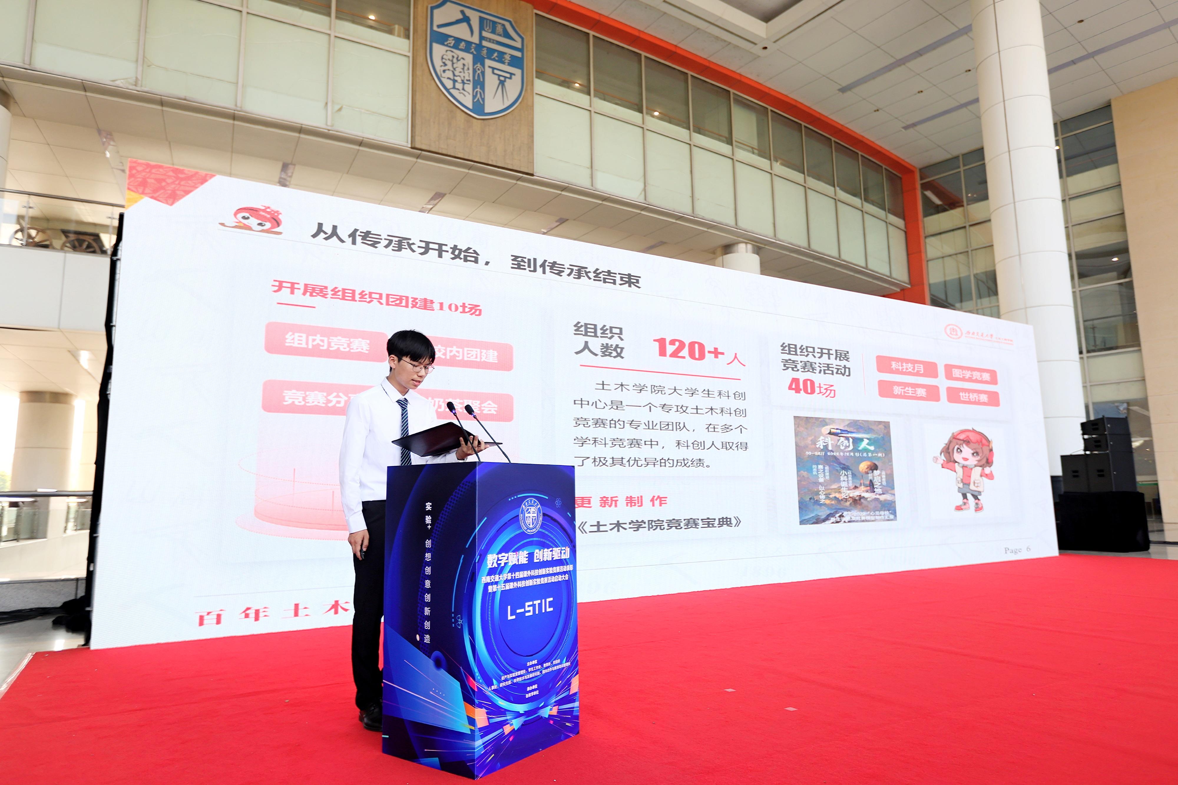 在4月18日下午在犀浦校区图书馆二楼举行的第十四届课外科技创新实验竞赛颁奖典礼暨第十五届课外科技创新实验竞赛启动大会中,我院学子取得了极为优异的成绩。在参与本次课外科技创新实验竞赛的优秀作品中,有26份作品来自我院。其中获评金奖作品2项、银奖作品1项、铜奖作品7项以及优秀奖作品16项,同时我院连续两届获得优秀组织奖荣誉称号。我院所有参评作品中,绝大部分优秀作品来自于2022年度科技月的获奖作品,其获奖率高达86%,创下历史新高,说明了我院在2022年度的竞赛工作中取得了极为突出的成效。