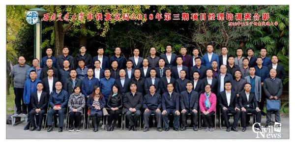 最后,卜海林部长做了会议总结,他代表北京工程局感谢西南交通大学土木工程学院为此次培训所付出的努力,并希望全体学员能学有所成、学以致用。至此,中铁北京工程局2018年第三期项目经理培训班结业典礼在全体人员合影留念后圆满结束。