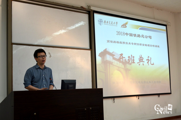 2018年5月15日上午八点半,在我校九里校区0222教室举办了中国铁路总公司高铁路桥维修技术专职任职资格理论培训班开班典礼。土木工程学院院长助理占玉林、继续教育培训中心副主任朱明及培训中心办公室郭静、李琪老师出席了此次开班典礼。开班典礼由朱老师主持。