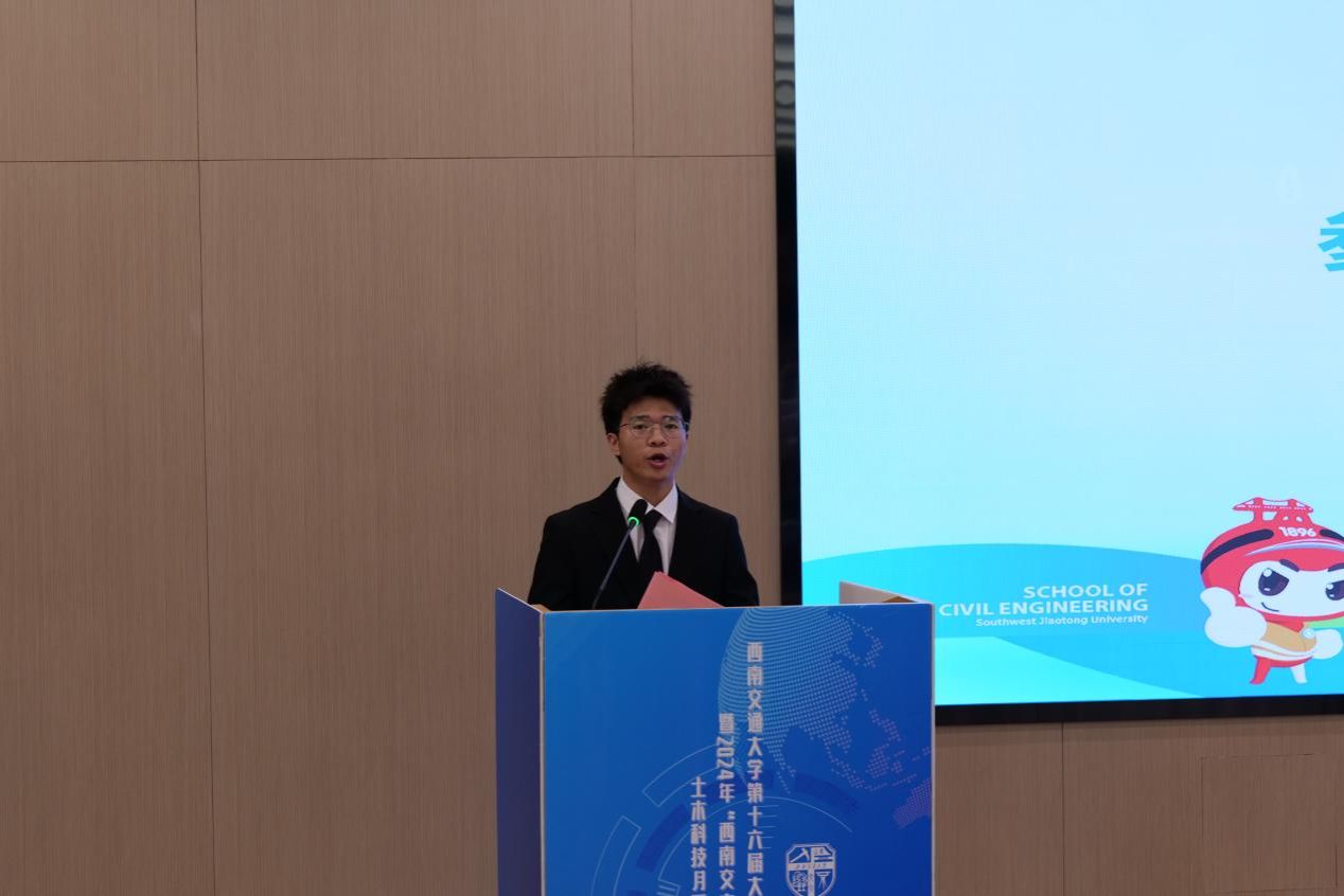 最后,孟总预祝所有参赛者都能取得圆满的成绩!预祝本次大赛圆满成功!并宣布,第十六届大学生课外科技创新实验竞赛活动暨2024年“西南交大土木工程设计公司杯”土木科技月系列活动正式开幕。