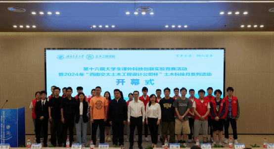 科技强则中国强,科技兴则中国兴。为进一步推动我校科技教育,培养学生创新精神和实践能力,2024年4月17日下午16:00,第十六届大学生课外科技创新实验竞赛活动暨2024年“西南交大土木工程设计公司杯”土木科技月系列活动开幕式在西南交通大学犀浦校区二号报告厅正式举行。